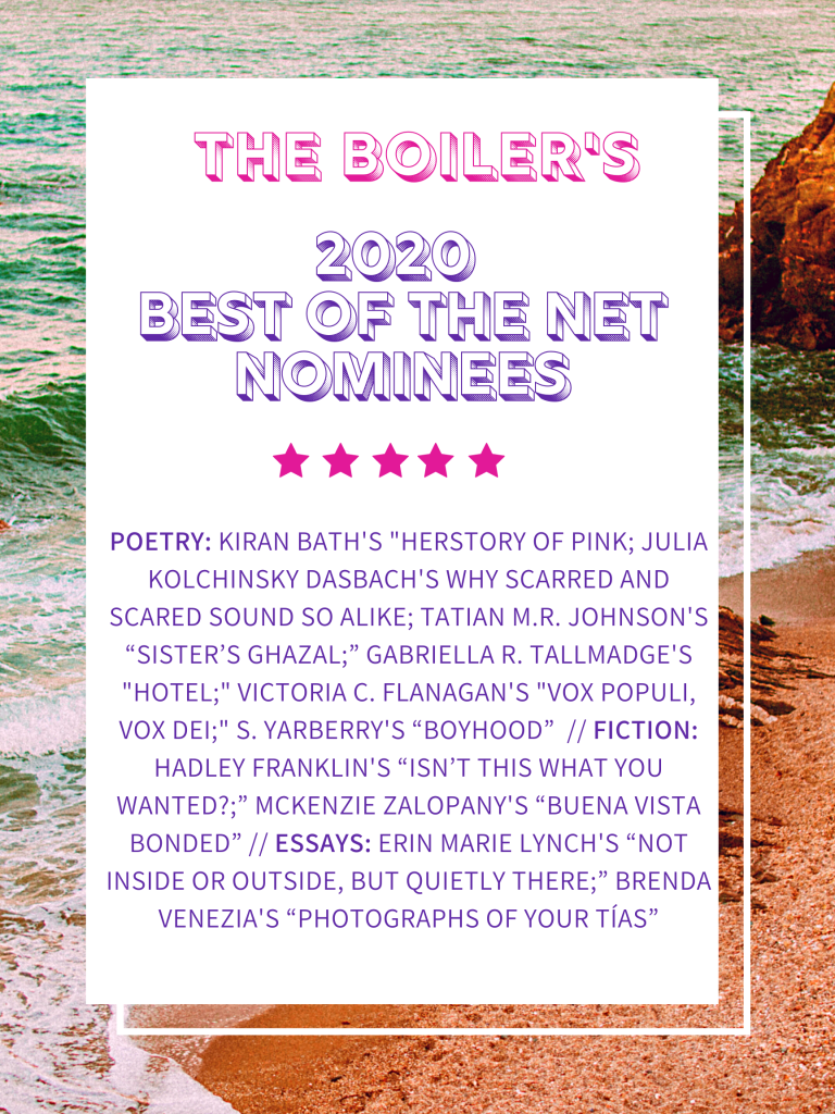 We’re pleased to share our nominees for this year’s Best of the Net! You can read the nominated pieces here.